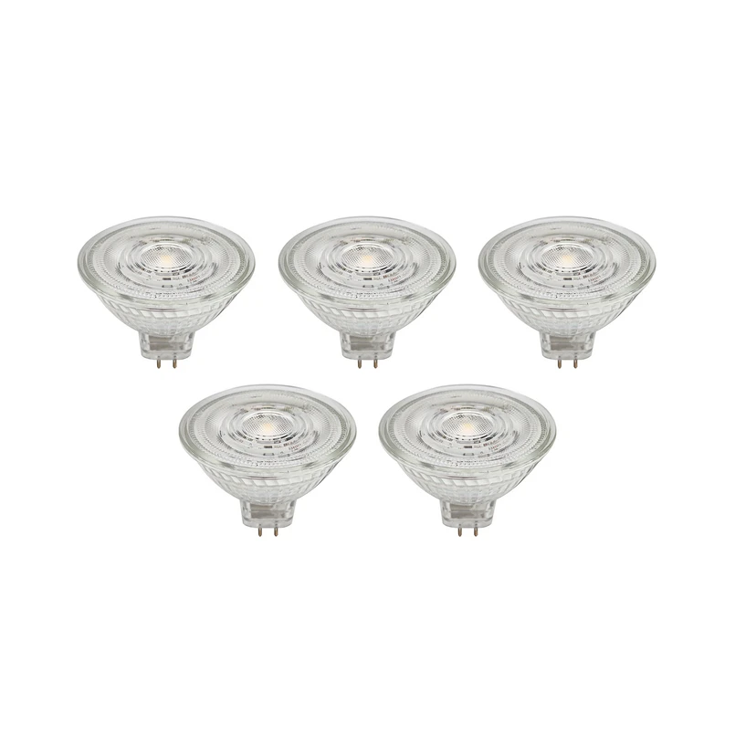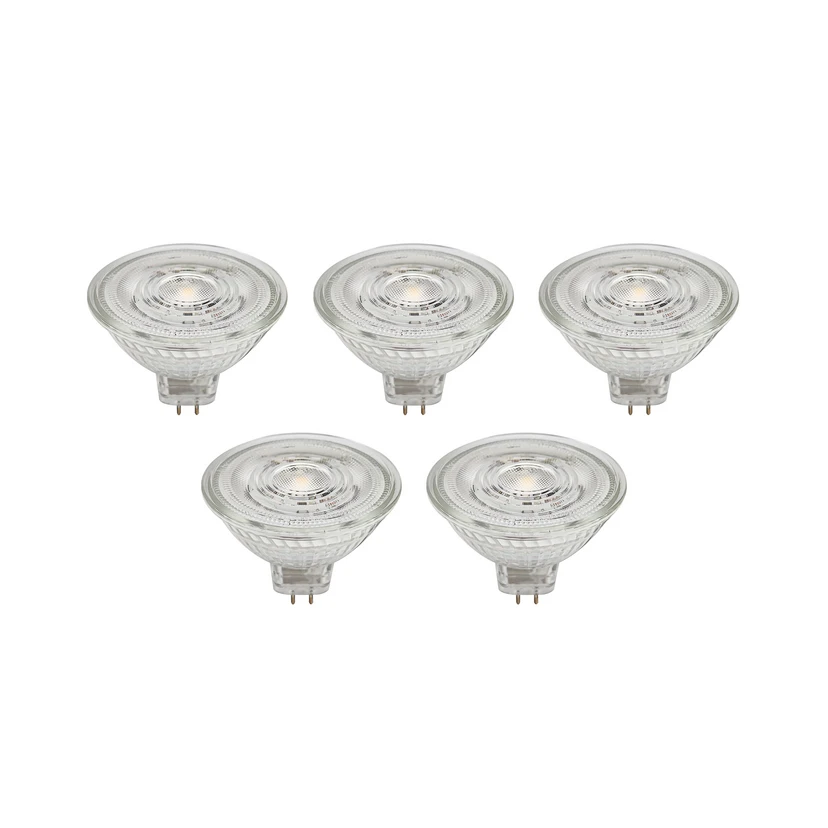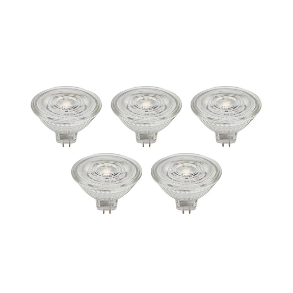 GU5.3 4.9W LED-heijastin lasista, läpinäkyvä, käytännöllinen 5 kpl:n setti Tämä LED-heijastin sopii lukuisiin valaisimiin, joissa on GU5.3-pistorasia. Se on valmistettu lasista, ja sitä voidaan käyttää joustavasti sen läpinäkyvän värimallin ansiosta - ei himmennettävissä - 4,9W - 500 lumenia - sädekulma 36° - toimitetaan 5 kappaleen sarjassa