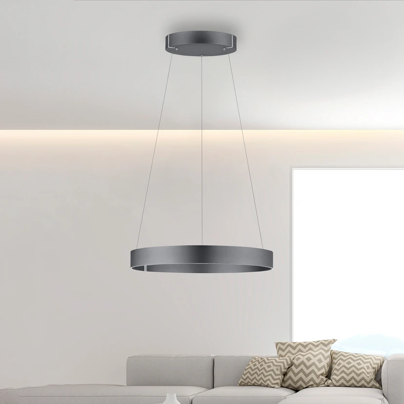 Moderni LED-riippuvalaisin, jossa on sähköinen korkeussäätö, CCT ja kaukosäädinPaul Neuhaus Pure -yhtiön E-Clipse LED-riippuvalaisin on moderni ja tyylikäs valaistuselementti mihin tahansa huoneeseen. Valaisin on valmistettu korkealaatuisesta alumiinista, ja se on sähköisesti korkeussäädettävä, jotta se voidaan mukauttaa joustavasti huoneen korkeuteen. Integroidut LEDit tuottavat miellyttävän ja kirkkaan valaistuksen, joka on paitsi energiaa säästävä myös kestävä. Sekä kirkkautta että valon väriä voidaan säätää portaattomasti mukana toimitetulla kaukosäätimellä.