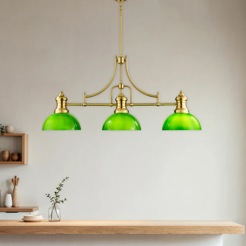 Riippuvalaisin Platino, kulta/vihreä, lasi, 3-lamppuinen, E27