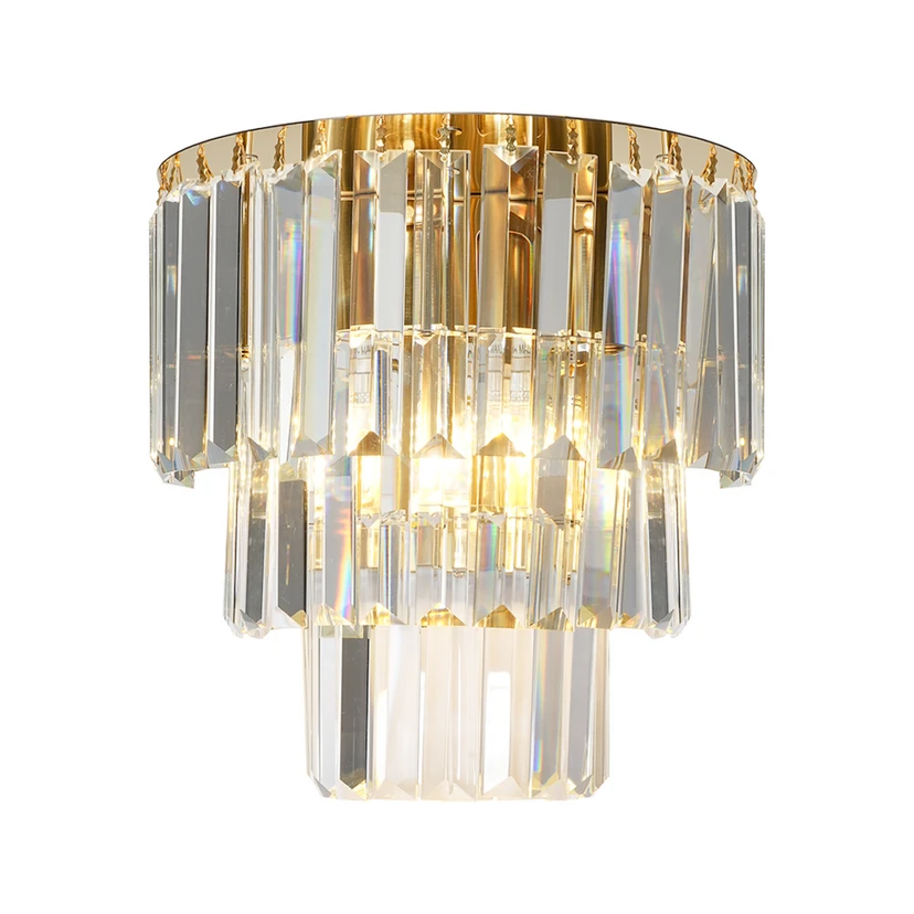 Milano-seinävalaisin yhdistää tyylikkään muotoilun ja toimivan valaistuksen ja on koristeellinen lisä jokaisessa olohuoneessa. Valmistettu korkealaatuisesta metallista ja lasista, se loistaa elegantissa kultaisen ja läpinäkyvän kristallin yhdistelmässä. Tämä valaisin on ihanteellinen olohuoneeseen tai eteiseen ja sopii saumattomasti erilaisiin sisustustyyleihin.