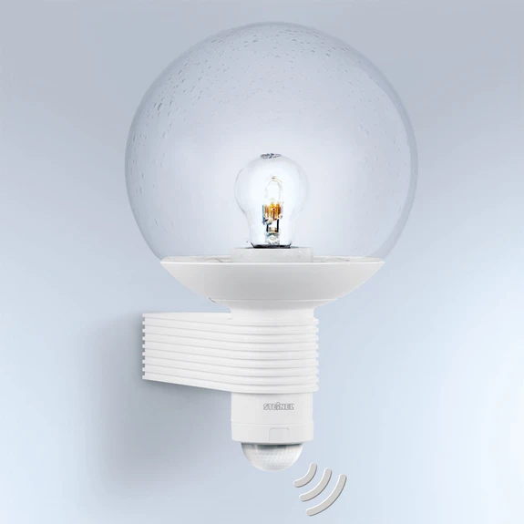 L 400 S: Tunnistimella varustettu ulkoseinävalaisin, jossa on kristallilasista valmistettu pallomainen varjostin Liiketunnistimella varustettu ulkoseinävalaisin L 400 S säteilee ympärilleen kiehtovaa valoa, joka säteilee nykyaikaisuutta ja tyyliä myös valaisemattomana, ja se sopii moneen julkisivumalliin. Ulkovalaisimessa on myös vertaansa vailla oleva toiminnallisuus. Mikään ei pääse 240° liiketunnistinta pakoon. Tunnistusalueen kantama on yhdestä metristä kahteentoista metriin, jonka voi pienentää 1 metriin peitelevyn avulla. Mukana toimitettu kansi voidaan leikata mittojen mukaan. Aika-asetusta voidaan säätää 10 sekunnista 15 minuuttiin. Kirkkautta voidaan säätää 0 %:sta 50 %:iin. Käsinpuhallettu kristallilasi luo erityisen tehokkaan valaistustunnelman. Runko on valmistettu säänkestävästä muovista, ja se on vankka. IP44-suojauksen ansiosta valaisin on varustettu kestämään myös ankarat sääolosuhteet - 180° aukkokulma - Tunnistinjärjestelmä: 5 tunnistustasoa 276 kytkentävyöhykkeellä - Hämäräasetus: 2 - 2000 luksia - Asennuskorkeus max. 6 m