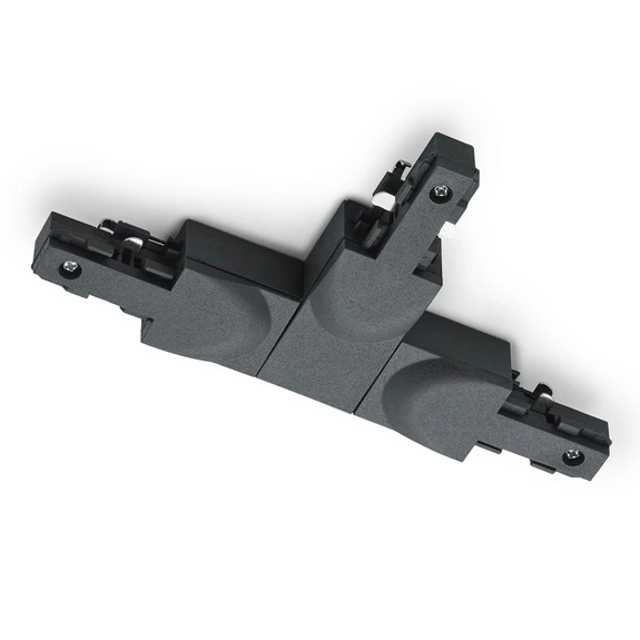 DUOline T-liitin 2-vaiheiseen kiskojärjestelmään Tämä T-liitin sopii DUOline 2-vaiheiseen kiskojärjestelmään. Sen avulla voidaan yhdistää kolme raidetta. Saatavana kunkin kiskon väriin sopivana versiona. - Versio, jossa on suojajohdin oikealla sisäpuolella