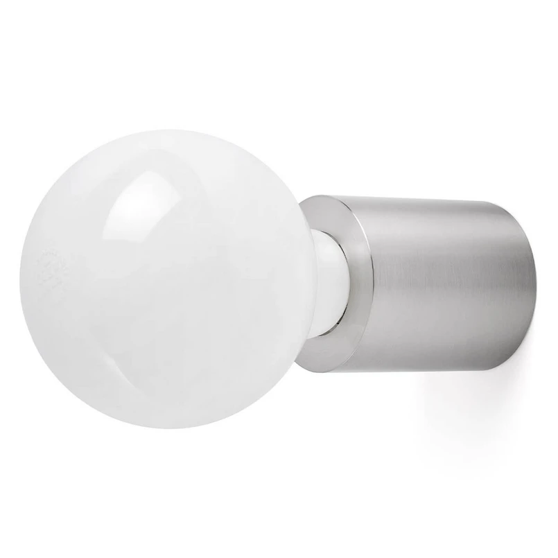 Yksinkertainen pidin on valmistettu metallista, jossa lampun kanssa pidin on asetettu - että on seinä lamppu kymmenen, joka voidaan optisesti muuttaa valitsemalla lampun. Kuten kuvassa, voidaan käyttää kirkasta lasia sisältävää globe-lamppu , mutta myös satiinipintaiset LED-lamput tai muun muotoiset lamput (katso lisävarusteet). Lamppua voidaan käyttää myös kattovalaisin pienissä tiloissa tai kun useita on asennettu.