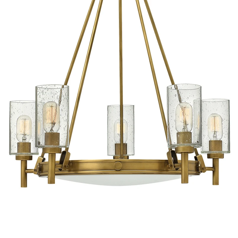 Vanhamessingin värinen pinta ja lieriönmuotoiset, epätasaisuuden ja ilmakuplien ansiosta tyylikkään ja koristeellisen näköiset valaisinlasit saavat aikaan viisilamppuisen Collier-kattokruunun upean antiikkisen ilmeen, joka sopii erityisen hyvin antiikkityylisiin sisustuksiin. Valo loistaa lieriönmuotoisten valaisinlasien läpi todella tasaisesti luoden huoneeseen upean valaistuksen. Aivan erityisen vaikutuksen kattokruunu tekee, kun siinä käytetään niin sanottuja hehkulangallisia vintage-lamppuja.