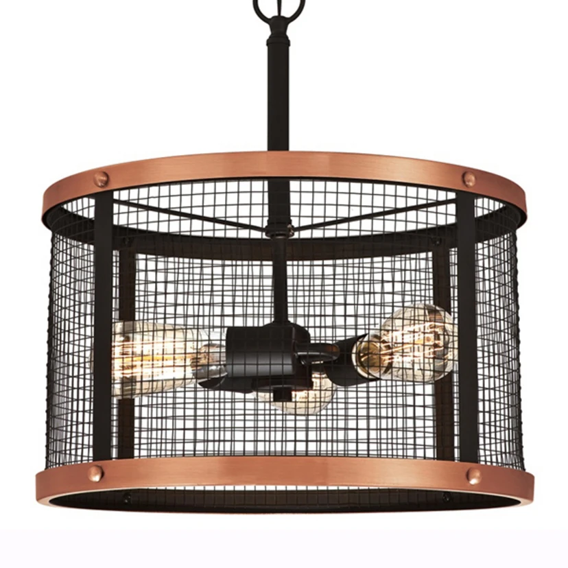 Tämä epätavallinen riippuvalaisin Emelie vakuuttaa materiaalilla ja muodolla. Trendikäs häkkirakenne kiinnittää välittömästi huomion. varjostin koostuu häkkiverkosta, jossa on useita neliömäisiä verkkoja, jotka mahdollistavat suoran kuvan valonlähteistä. Sylinterimäinen ja leveä, varjostin sulkeutuu ylhäältä ja alhaalta koristeellisilla, kuparinvärisillä renkailla, jotka korostavat lampun visuaalisesti. Jotta voidaan korostaa maalaismainen tyyli riippuvalaisin, ketju karkeaa linkit valittiin jousitus, joka tekee lampun ilmeen vankka. Näkyvät valonlähteet käännetään vaakasuoraan pistorasioihin, jotka syntyvät yhteisestä Basis keskeltä. Valonlähteiden erilaisen suuntauksen vuoksi lamppu peittää suuren alueen. Valo voi poistua suoraan kaikkiin suuntiin. Ympärillä se houkuttelee säleikön läpi houkuttelevia valo- ja varjoefektejä, jotka antavat huoneelle miellyttävän kosketuksen. On suositeltavaa valita hehkulamput, kuten maalaismaiset lamput, lamppujen suoran näkyvyyden vuoksi.