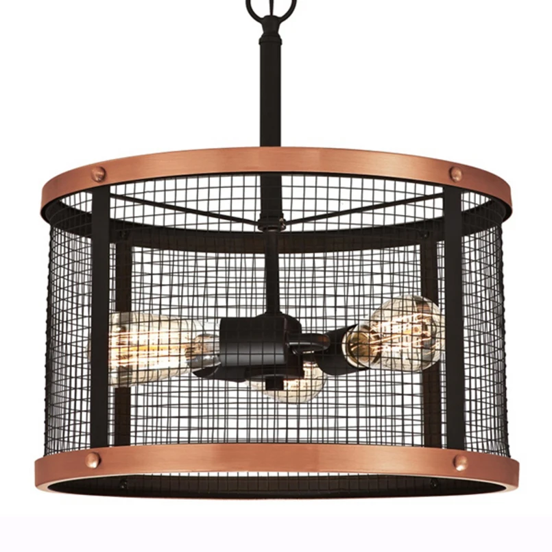 Vintage riippuvalaisin Emelie silmiinpistävällä häkin varjostin ja kuparinvärisillä yksityiskohdilla